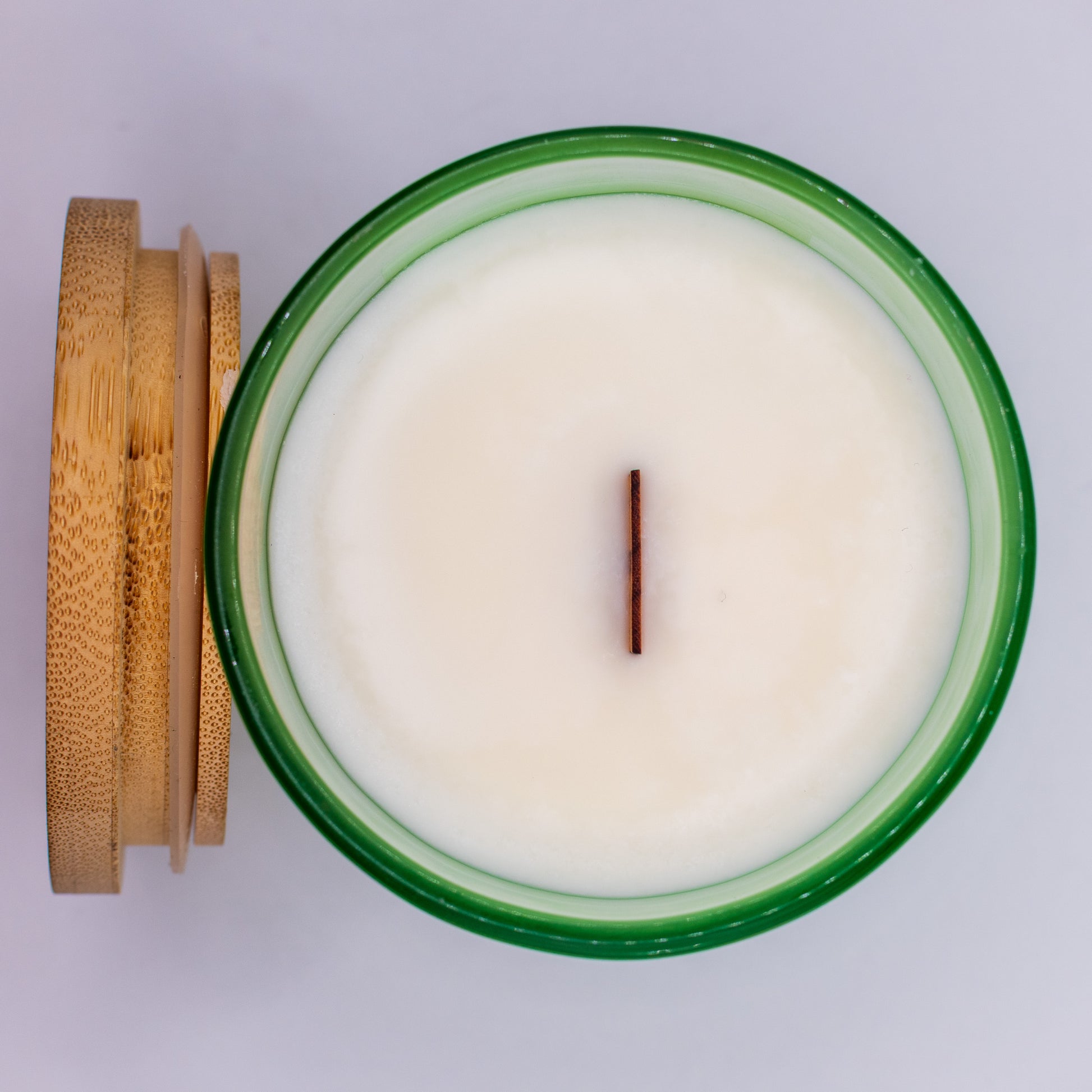 Glass, bamboo lid, 100% organic soy wax